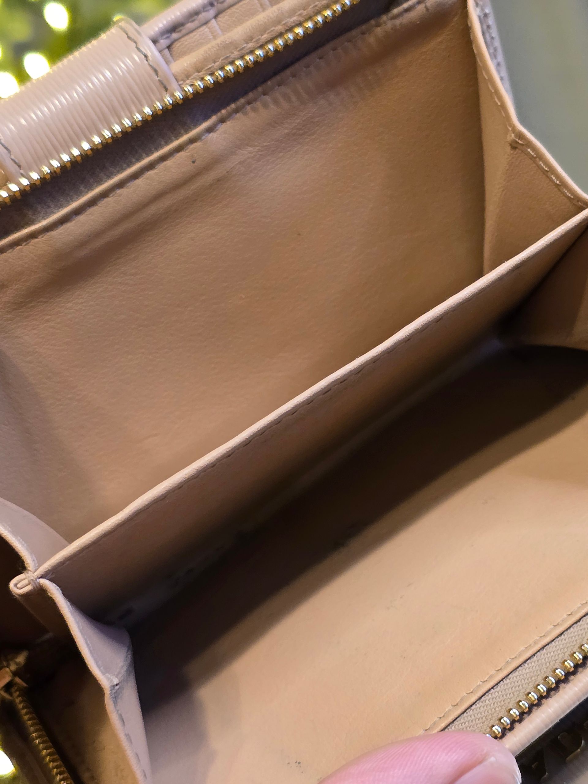- Interior: The coin compartment has some minor stain.
